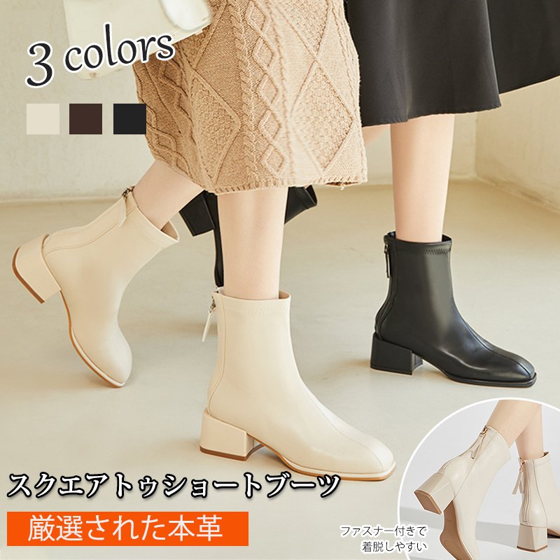 スクエアトゥショートブーツ